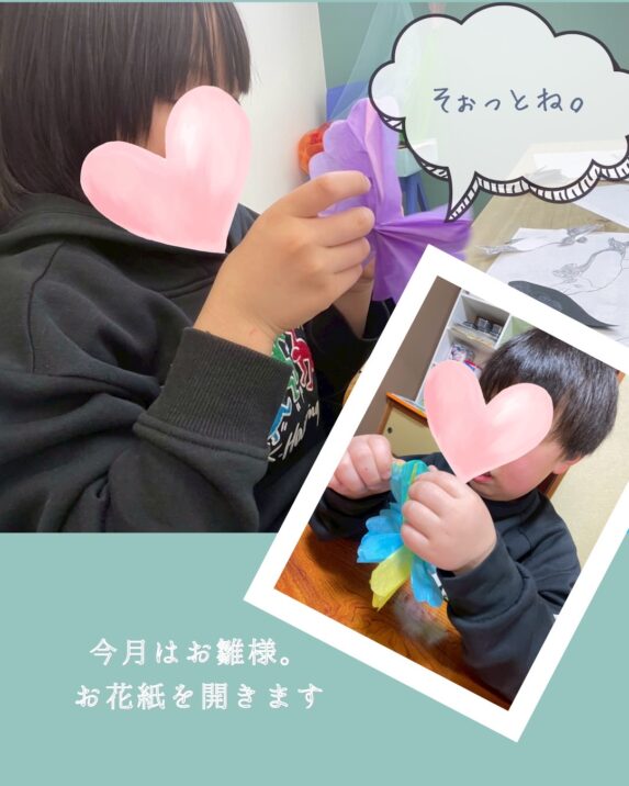 ゆっぴーでは、2月の制作でオリジナルの雛飾りを行いました。